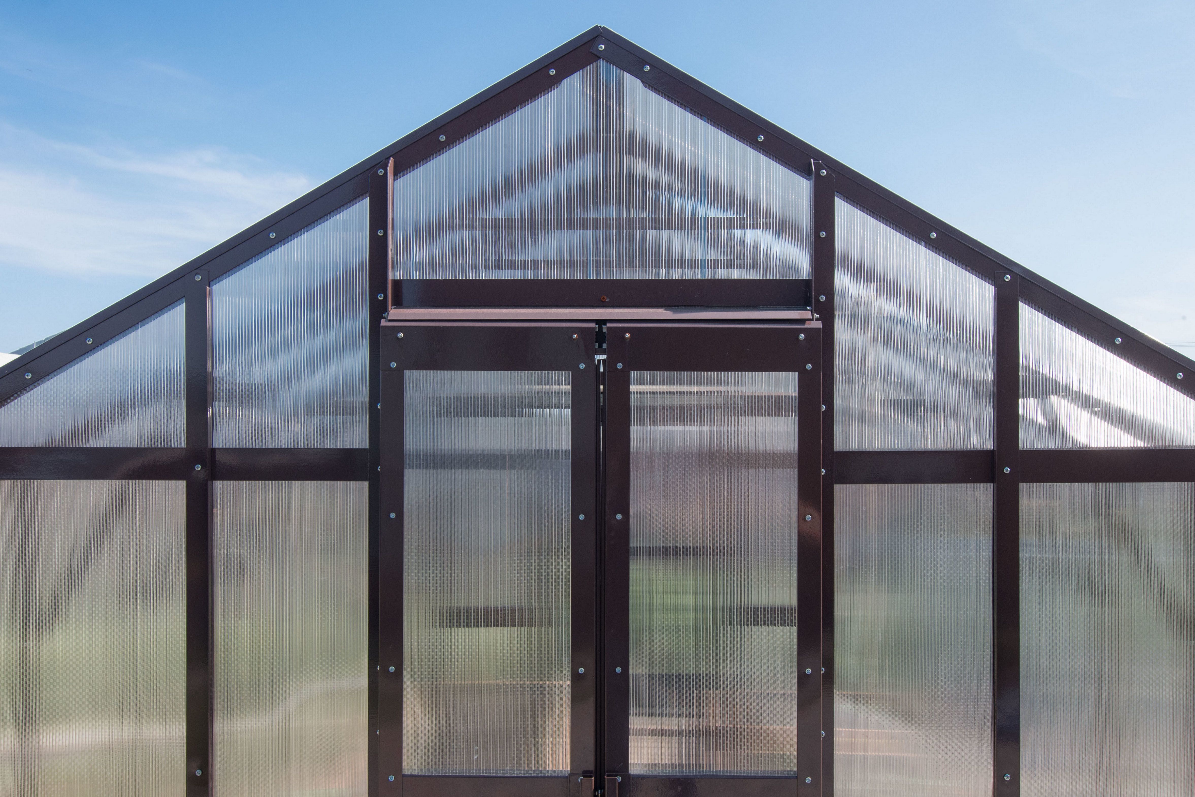Длина базовой теплицы - 4 м., в комплекте: дверь-купе и две форточки в крыше.